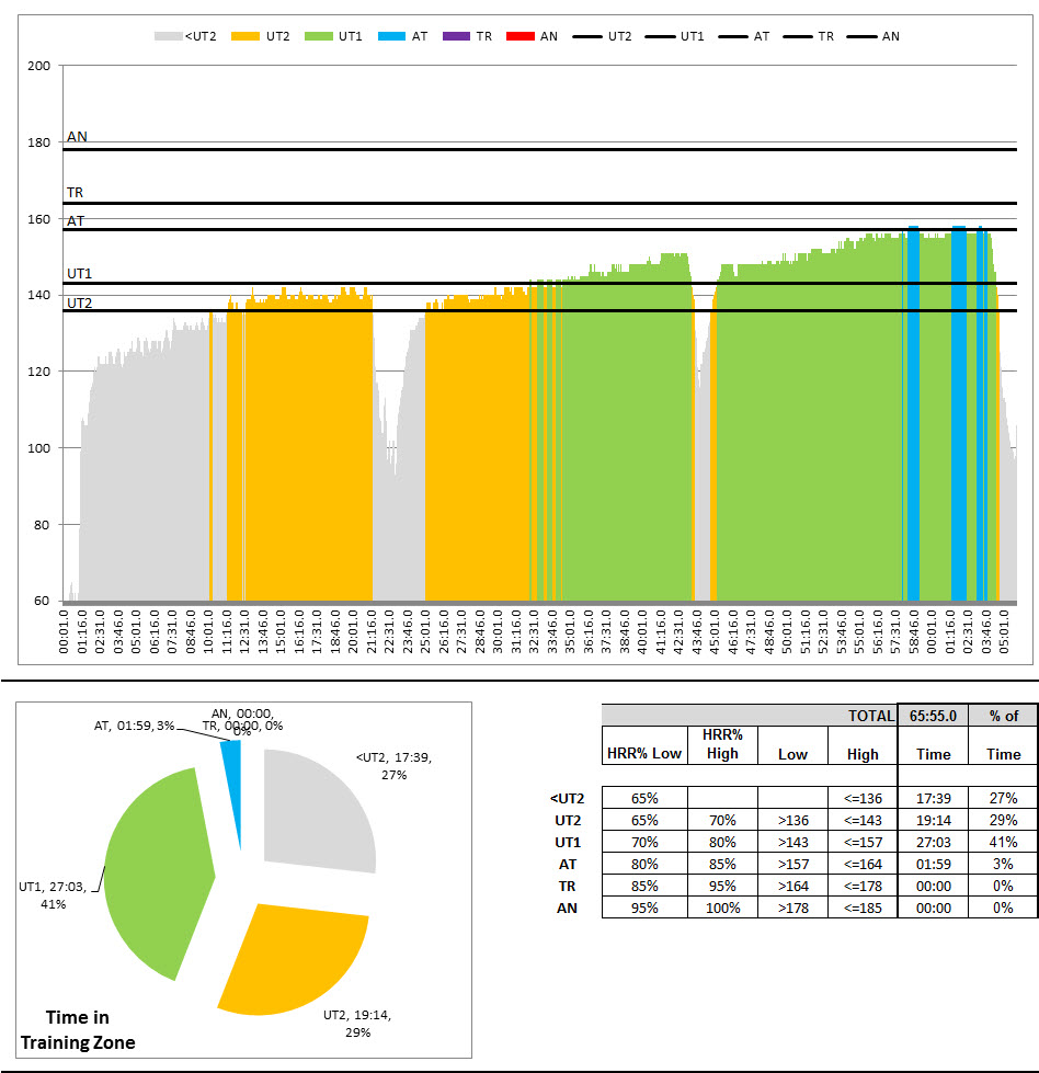 Anyway, I was out of time and tired out after 3 pieces, so I blew off the last planned 20 minute piece. I hit a HR at 156 BPM with about 5 minutes left in the l3rd piece, so I backed off from 184 to 180w from there to the end to stop the HR drift.