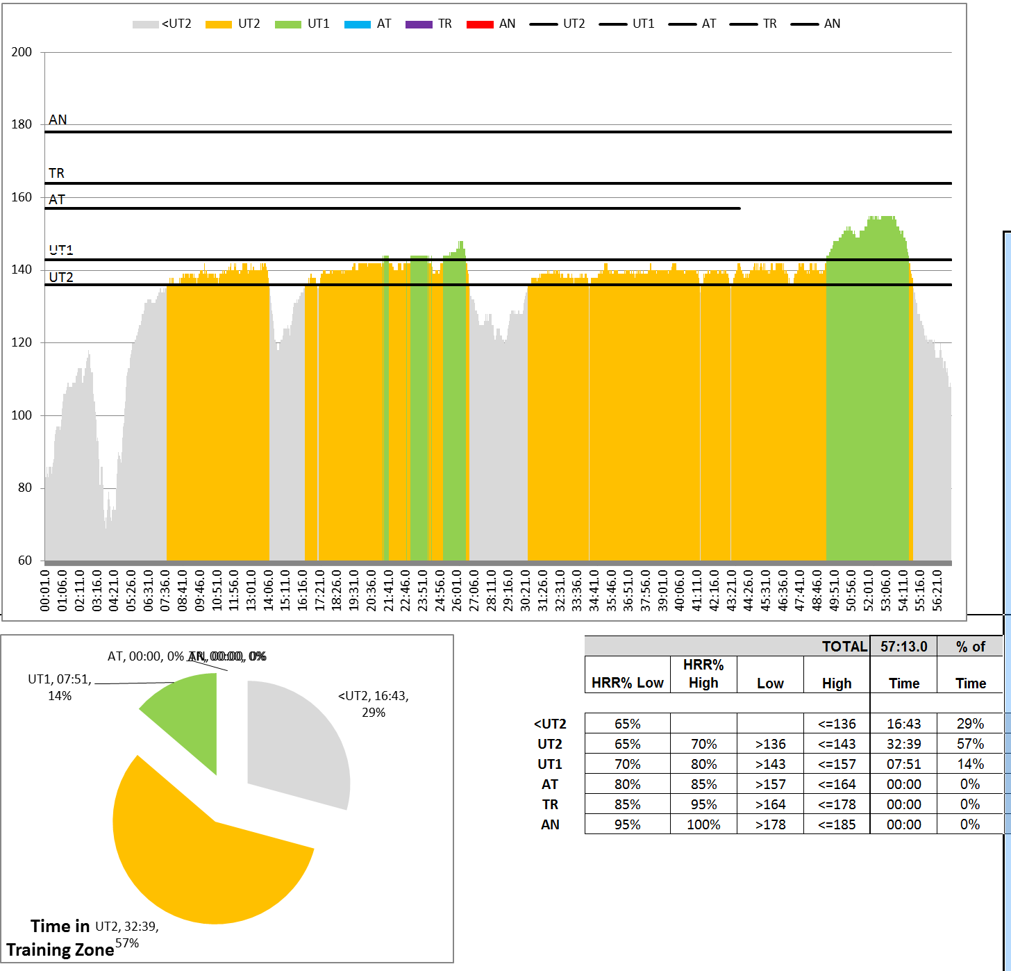 This was the first time that I tried the whole maximum incline thing.  I think this is a good cross training session.  By increasing the angle and decreasing the speed, it is much lower impact, and I can manage my HR quite easily with speed changes.  Because it was unfamiliar, it was pretty tough,, even with a lowish HR.