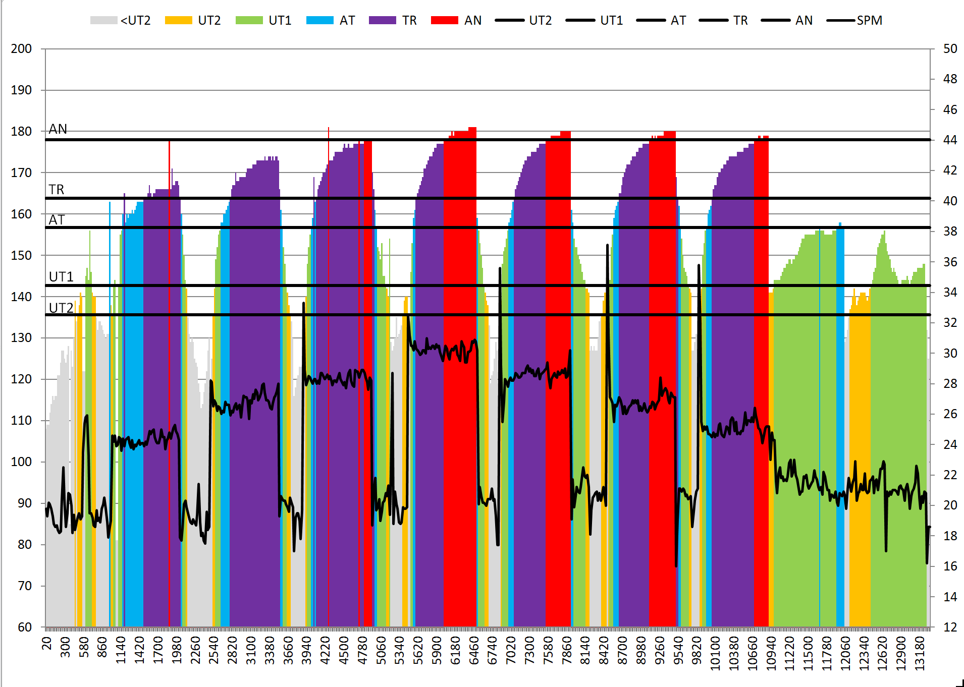 Now the fatigue was really setting in, and I knew that the r26 rep was going to be going into the wind. Again, I stuck to the plan. Focus on rate. Don’t fret the pace. It was over reasonably quickly. The r24 with the tail wind was just the period on the end of the sentence. It was difficult to get my rate down to 24. It wanted to creep up and I ended up averaging r25 for this one.