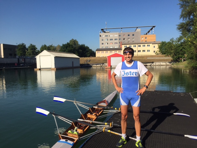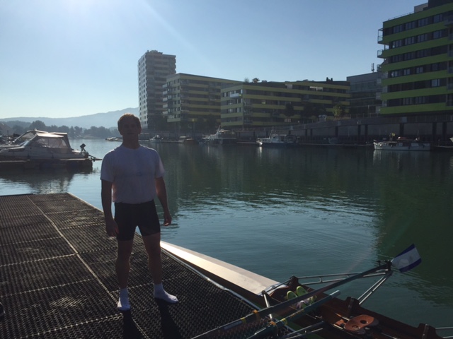 I met Antonis, a friendly greek expatriot physicist who has been working in Austria for the last 7 years. He was an very good rower, much better than I am, and has been rowing since 1992. We went into the boat storage area (which incidentally is a concrete bunker that used to be a military installation), and he picked out a beautiful wooden double for us to use. The boat was apparently used by the Austrian Team in the 1984 Olympics in Los Angeles. It has been meticulously cared for since then because it felt stiff and light when we rowed it.