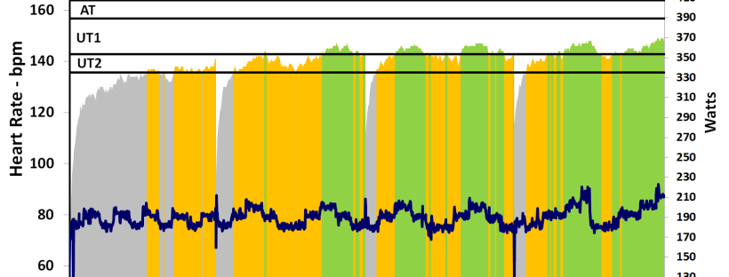 Not on slides for a change. So, that left the question of the right power to target. My guess was 10W higher. My guess turned out to be right. It felt just challenging enough and my lactates were right on target at 1.6mmol/l after 60 minutes.