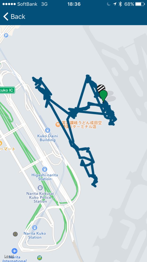 I used the wahoo app to try to track how far I walked, but GPS was not working too well indoors. Here’s the path that it thinks I walked.