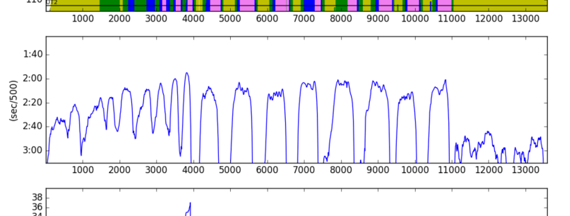 The main event. Starting target was 2:04 for 1K, then 2:03 for 1K, and so on until I got down to 1:55 target for the last 1K. Of course, I just went for broke in the last bit.