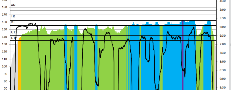 In the morning, I popped down to the fitness center and did 30 minutes on the treadmill (max incline – 15% and around 3.5mph), aiming to upper end UT1 heart rate. Then 30 minutes on the stationary bike, aiming at UT2.