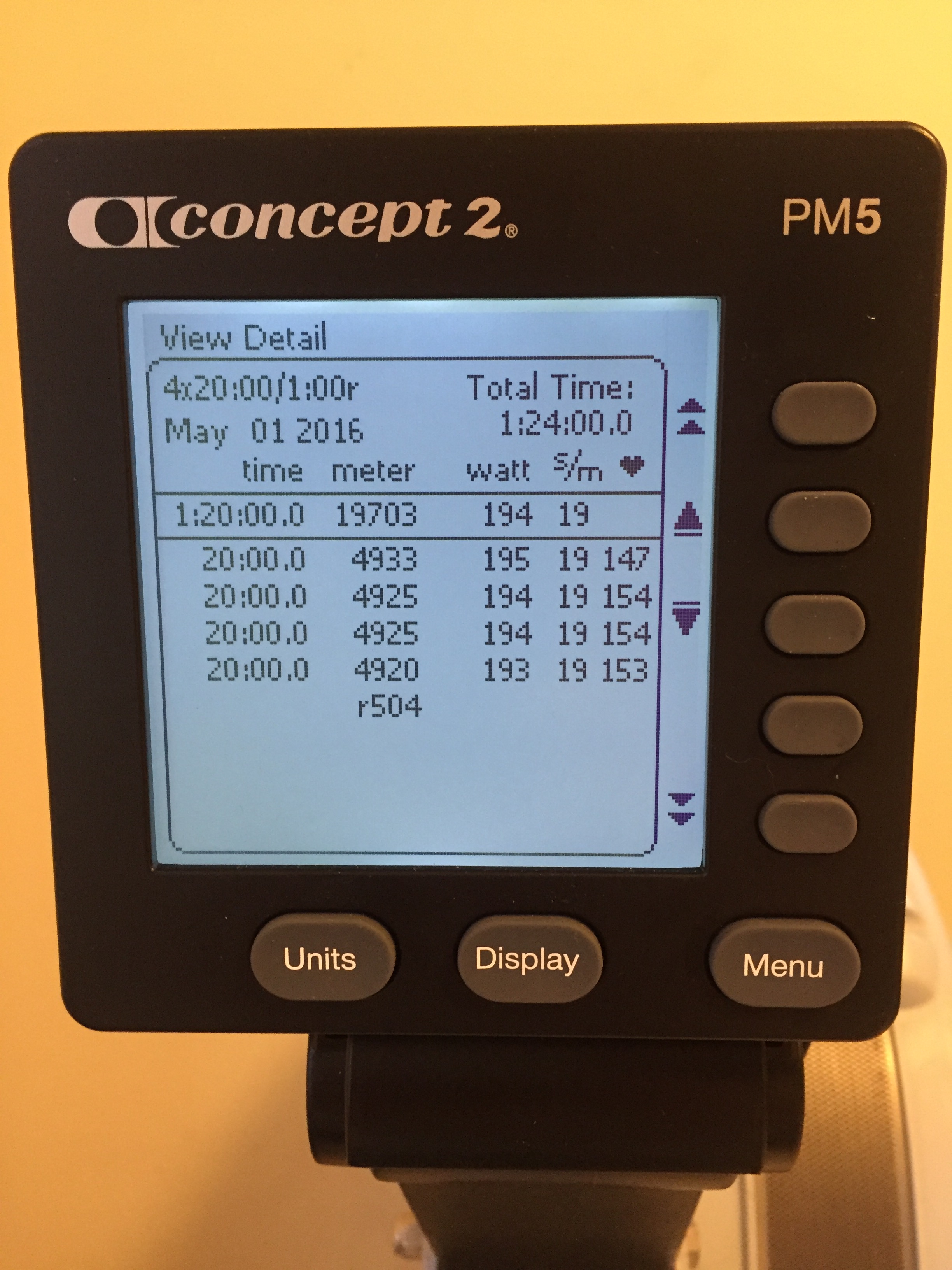 Sunday: 4 x 20′ / 1′ L4
