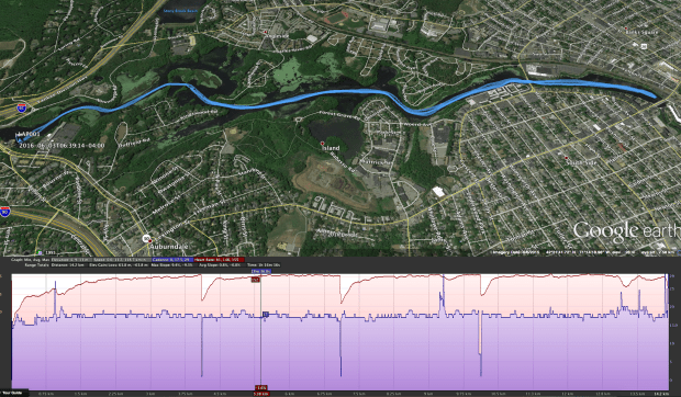 Cloudy, very light wind, maybe 2mph.  Flat water.  Around 65F.  A wonderful morning to be on the river.  Didn’t see another soul the whole time I was out there.