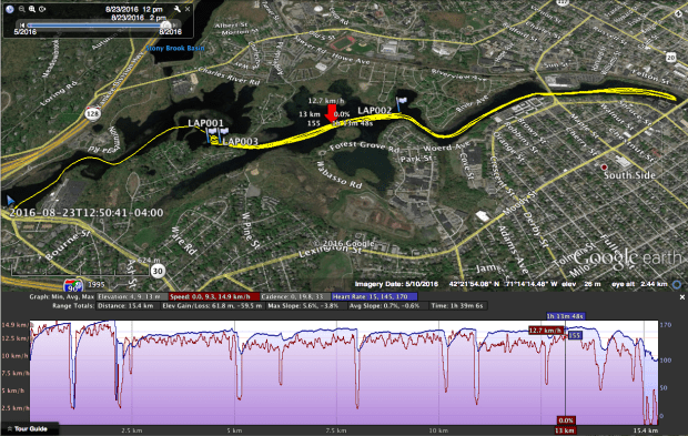 The 1000s went fine. The first one was with the light wind and was done at an average pace of 2:11.4. The second was upwind and the pace was 2:13.3. I was winded but I didn’t push them all that hard. After that, I did the river twice from the start to the moody street dam. At first I was feeling like I was really struggling to hit any reasonable split. But eventually, I started to row a bit better and sped up. The main difference was focusing on getting way into compression at the catch.