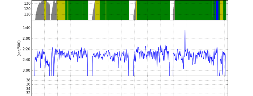 5. Effort: As near as I can tell, we both put everything we had into the race. Here’s the Pace and Rate plots, with my HR. So, the last 5 minutes of the race was anaerobic. I felt spent at the end, but pretty much OK. But at the dock, I experienced something new. I had a massive coughing jag, and nearly threw up. It didn’t feel exactly like an erg cough, but it was a bit disconcerting. But, I certainly felt like I put everything I had into the race.