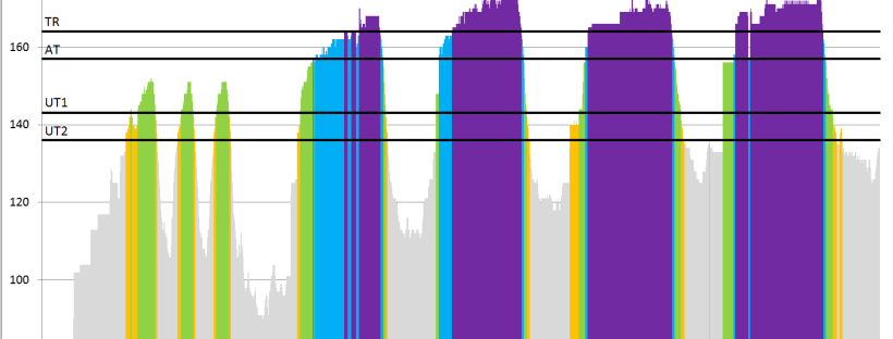 - 5′ recoveries (2.5% grade, 12:00/km pace)