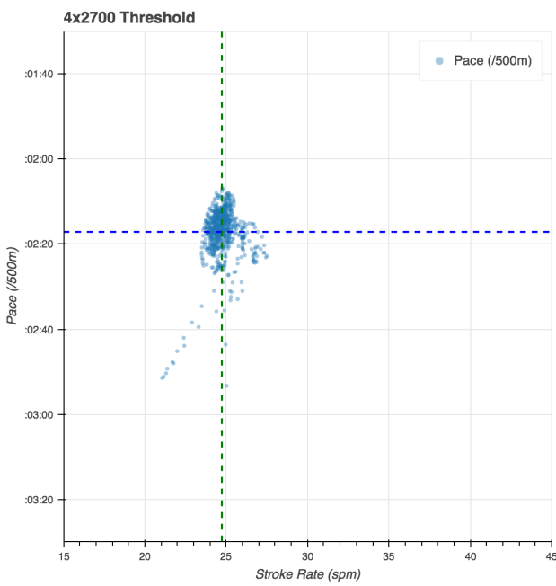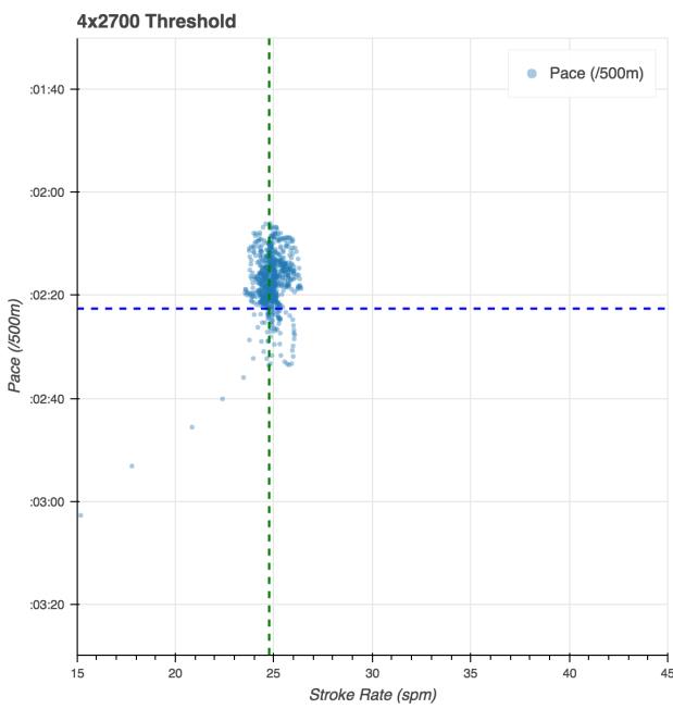 A very good workout. I pushed hard, but tried to stick to r24, and that kept the HR in a reasonable place. I wanted to focus more on rowing clean than driving for the best possible pace.