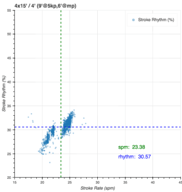Monday: 4×15′ / 4′ rest (9′ @ 5KP, 6′ @ MP)