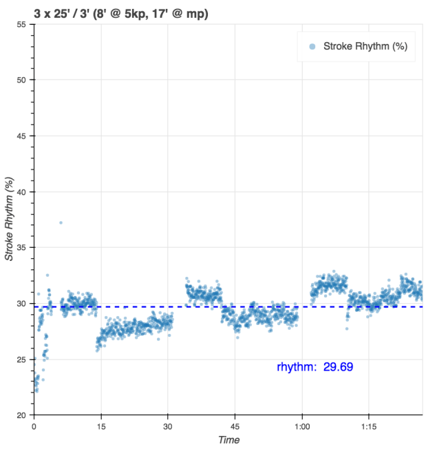 - Nearly identical stroke rates for the faster bits. A bit lower for the slow today (because I felt fantastic)