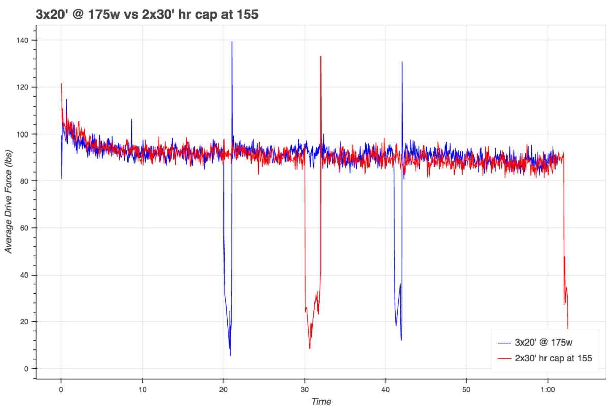 Sunday: 3 x 20′ / 1′ rest (dynamic)