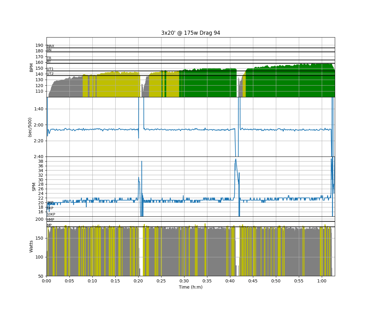 Sunday: 3 x 20′ / 1′ rest (dynamic)