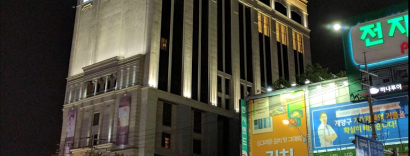 I was staying in a hotel in Incheon called The Charis.  It did not have a fitness center, but they had a deal with the sports club across the street to let their guest go work out there.