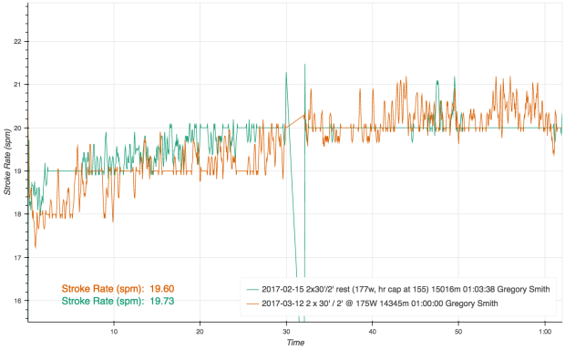 Workout Summary - media/Import_29133954.csv --|Total|-Total-|--Avg--|-Avg-|Avg-|-Avg-|-Max-|-Avg --|Dist-|-Time--|-Pace--|-Pwr-|SPM-|-HR--|-HR--|-DPS --|14345|60:00.0|02:05.5|177.2|19.0|148.0|000.0|11.0 W-|14345|60:00.0|02:05.5|177.2|19.0|148.0|000.0|11.0 R-|00675|04:00.0|02:57.8|062.3|00.0|000.0|000.0|00.0 Workout Details #-|SDist|-Split-|-SPace-|-Pwr-|SPM-|AvgHR|MaxHR|DPS- 00|07173|30:00.0|02:05.5|177.2|19.0|000.0|0.0|00.0 01|07172|30:00.0|02:05.5|177.1|20.0|000.0|0.0|00.0