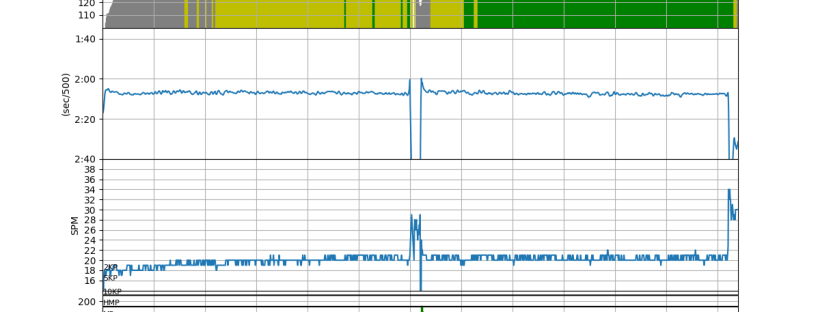 Workout Summary - media/20170502-2100210o.csv --|Total|-Total-|--Avg--|-Avg-|Avg-|-Avg-|-Max-|-Avg --|Dist-|-Time--|-Pace--|-Pwr-|SPM-|-HR--|-HR--|-DPS --|14498|62:00.0|02:08.3|168.4|20.3|143.5|156.0|11.5 W-|14212|60:00.0|02:06.6|172.1|19.9|143.6|156.0|11.9 R-|00287|02:00.0|03:30.1|063.5|27.9|136.2|156.0|06.2 Workout Details #-|SDist|-Split-|-SPace-|-Pwr-|SPM-|AvgHR|MaxHR|DPS- 00|07120|30:00.0|02:06.4|172.8|19.6|138.2|146.0|12.1 01|07093|30:00.0|02:06.9|171.5|20.3|149.0|156.0|11.6