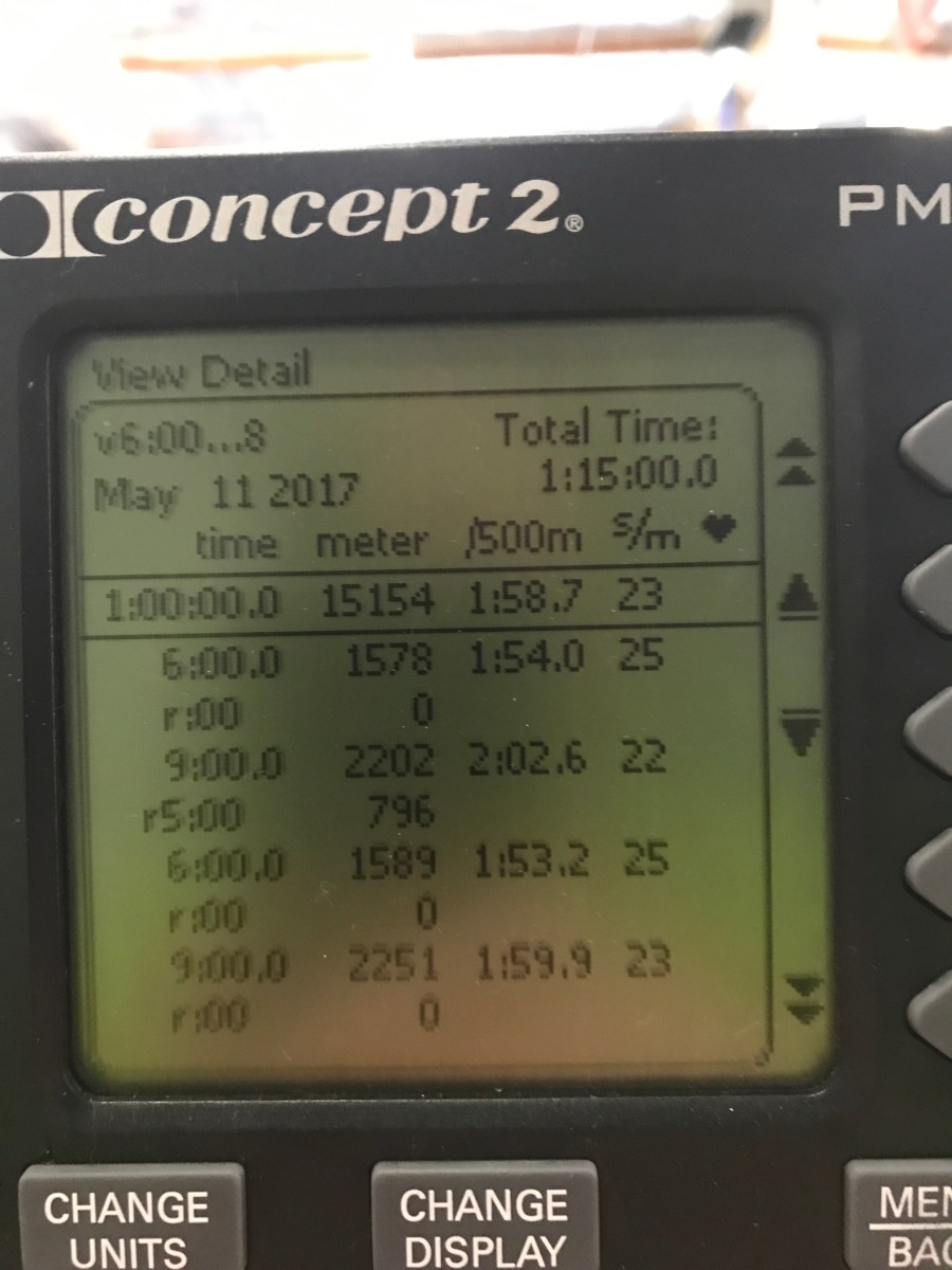 2017-05-11 07.19.15 Previous Next Published May 11, 2017 at 3024 × 4032 in Thursday: 4 x (6′ @ 5KP, 9′ @ MP)/5′ rest – A terrific workout!