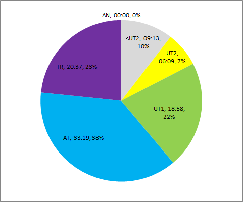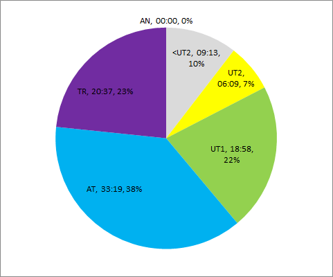 Thursday: 4 x 20′ / 2′ (mp, 10kp, hmp, mp)