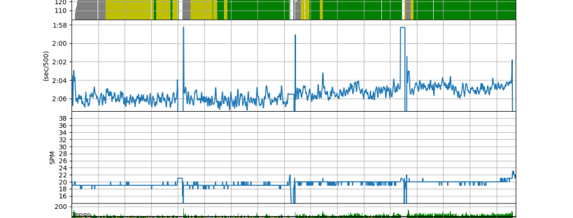 Workout Summary - media/20171104-1805300o.csv --|Total|-Total-|--Avg--|-Avg-|Avg-|-Avg-|-Max-|-Avg --|Dist-|-Time--|-Pace--|-Pwr-|SPM-|-HR--|-HR--|-DPS --|19507|84:00.0|02:09.2|176.7|19.4|145.5|154.0|12.0 W-|19192|80:00.0|02:05.1|179.0|19.4|145.4|154.0|12.4 R-|00319|04:00.0|06:16.0|070.0|19.1|141.5|154.0|05.4 Workout Details #-|SDist|-Split-|-SPace-|-Pwr-|SPM-|AvgHR|MaxHR|DPS- 00|04787|20:00.0|02:05.3|177.2|19.0|137.4|146.0|12.6 01|04776|20:00.0|02:05.6|176.8|19.0|145.5|151.0|12.6 02|04805|20:00.0|02:04.9|180.2|19.8|148.0|153.0|12.2 03|04825|20:00.0|02:04.4|181.8|20.0|150.9|154.0|12.1