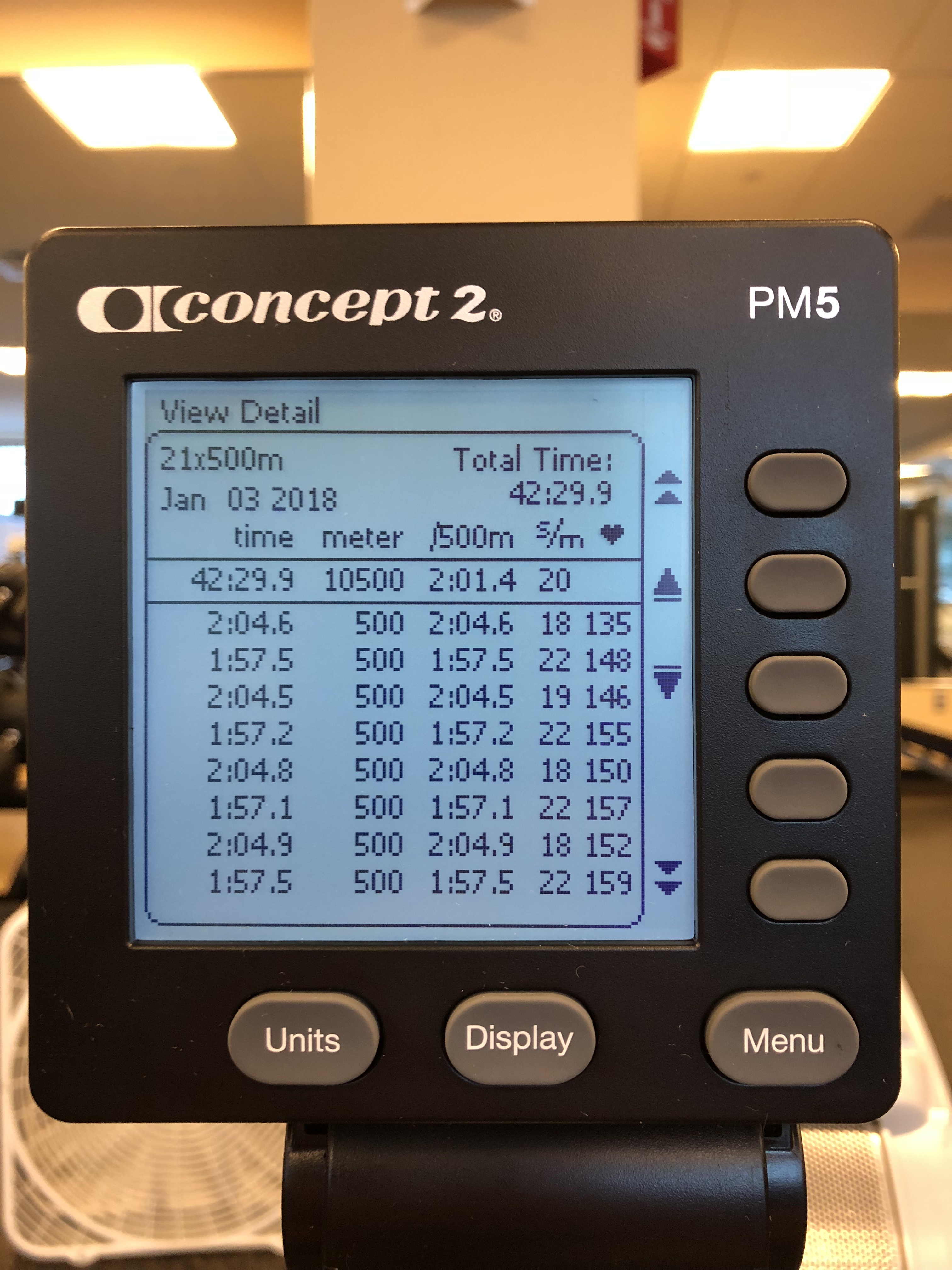 2018-01-03 08.07.19 Previous Next Published January 6, 2018 at 3024 × 4032 in Wed: Cat V / Cat VI 500s, Thurs: nothing, Fri: 3 x (5 x 500 CatIV/1′)/5′