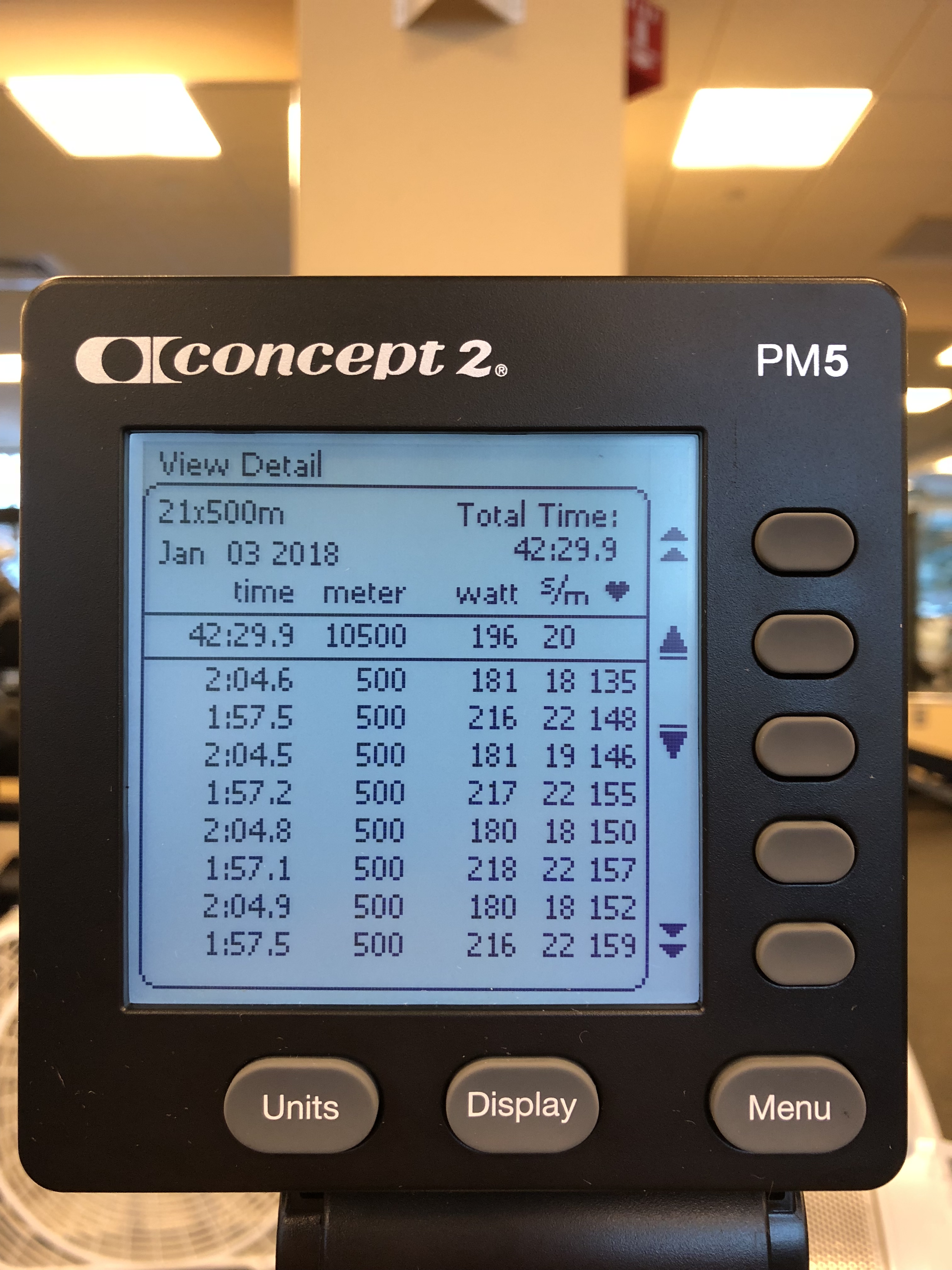 2018-01-03 08.08.19 Previous Next Published January 6, 2018 at 3024 × 4032 in Wed: Cat V / Cat VI 500s, Thurs: nothing, Fri: 3 x (5 x 500 CatIV/1′)/5′
