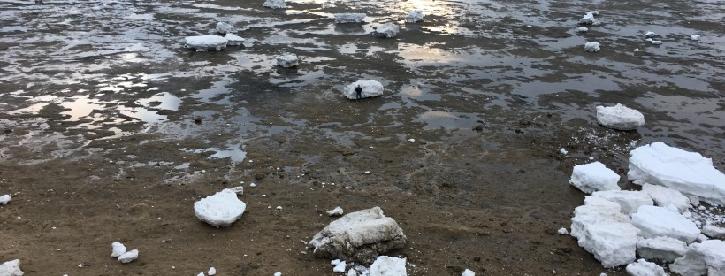 Later after the tide went out, there were ice bergs stranded all over the sand bank. Some of them were huge! Well over 6 feet thick. Can you find me in the picture?