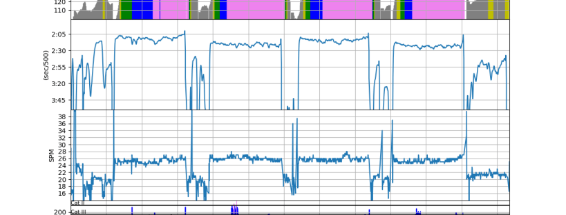 I didn’t push the third piece as hard through the first 1000m.  I was feeling a little rough around the edges.  After I negotiated the s-curve.  I pushed harder and finished it strong.