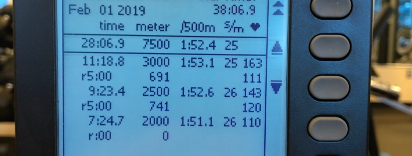 Workout Summary - media/20190201-1326170o.csv --|Total|-Total-|--Avg--|-Avg-|Avg-|-Avg-|-Max-|-Avg --|Dist-|-Time--|-Pace--|-Pwr-|SPM-|-HR--|-HR--|-DPS --|08913|38:09.0|02:08.4|195.7|22.5|137.4|164.0|10.4 W-|07500|28:06.0|01:52.5|246.0|25.4|140.4|164.0|10.5 R-|01415|10:02.0|03:33.1|054.9|14.2|129.1|164.0|00.0 Workout Details #-|SDist|-Split-|-SPace-|-Pwr-|SPM-|AvgHR|MaxHR|DPS- 00|03000|11:17.5|01:52.9|241.6|25.1|152.2|164.0|10.6 01|02500|09:24.5|01:52.9|244.6|25.4|146.2|156.0|10.4 02|02000|07:24.8|01:51.2|254.6|25.8|115.0|120.0|10.4