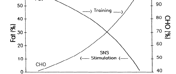 Where the cross over occurs can be moved by the kind of training that you do. If you do a lot of training below the cross over point, you can increase your ability to metabolize fat and essentially push the crossover gradually to higher and higher powers. The opposite can happen too, if your training focuses on more power and sprinting work, which stimulates the sensory nervous system, the cross over point can move down.