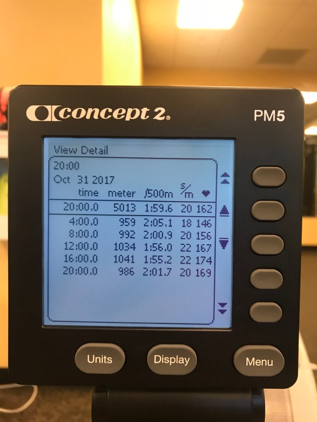 First a fletcher warmup. Felt better than I have on an erg this entire season. Good rate control. Felt good at the paces.