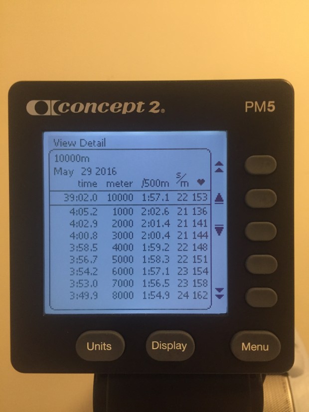 I was up late on Monday night, and ended up sleeping in on Tuesday morning. At the end of the day, I ducked into the fitness center for a quick workout. I wanted a bit of intensity, but didn’t have the oomph for a really hard session, so I did a 10K push. I was doing pretty well, but I had a bit of a blip near the end.
