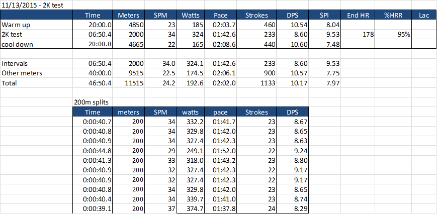 It was a nice, hard row. And I pushed it to the edge in the last interval. I was happy to get the rate up.