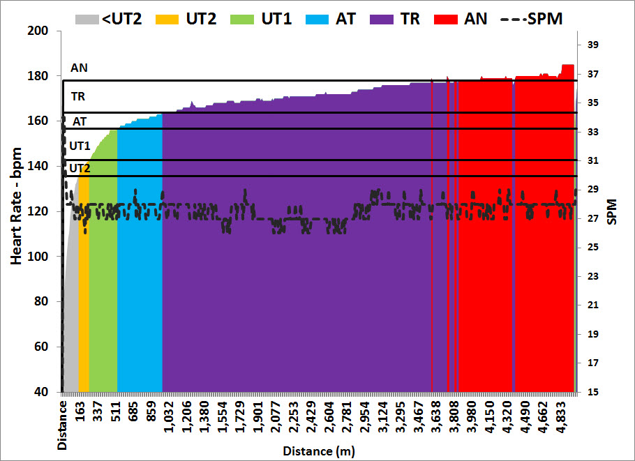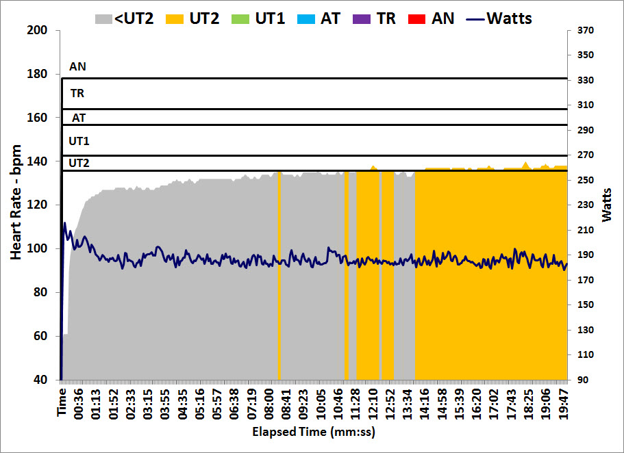 186.7W, 19.0SPM, 137.1BPM, 2.2mmol/l