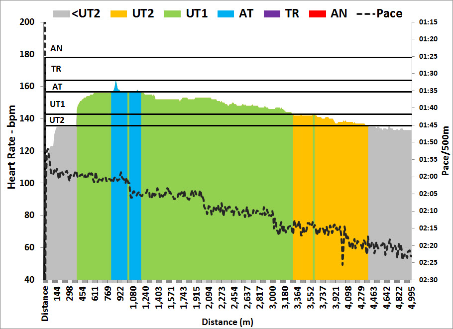 Then in to the main event, 5142m. I thought I could hold 1:50. I was wrong. Painfully wrong. Ouch.