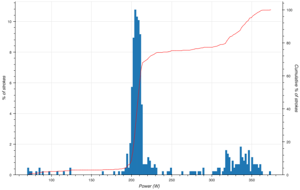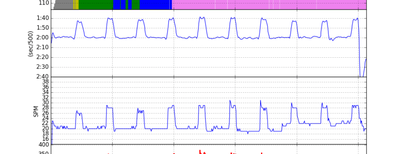 I had fun with the bumps, so I decided to do it again. Today, I tried to hit r24 and 220W for each of the bursts. I was really feeling the strain by the last 20′ piece, but I was having a good time with it.