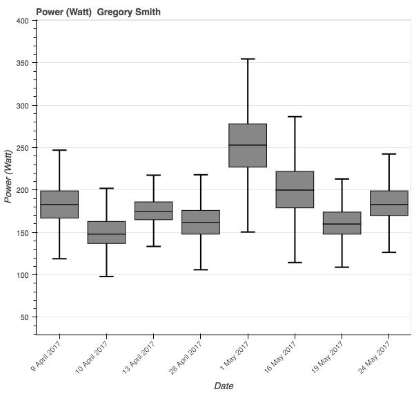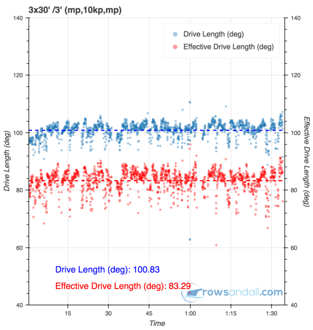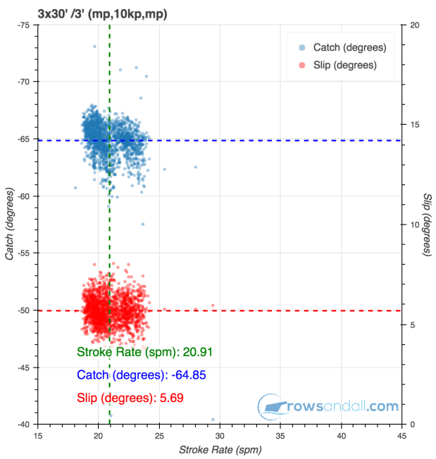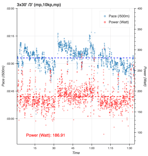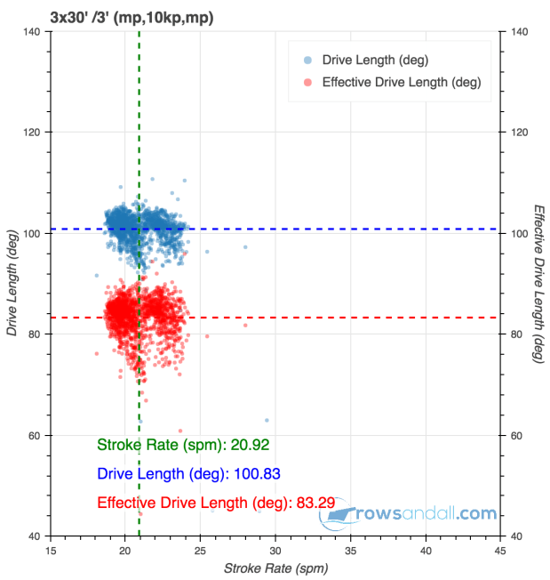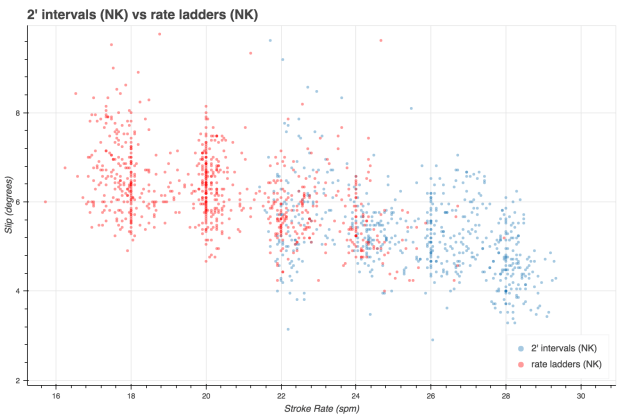 Again using rate limiting to manage intensity. (22,24,26,28) The annoying thing is that I must have bumped the speedcoach I got my drink of water after the first set, because that’s where the data ends!