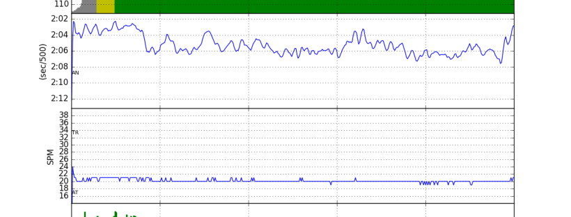Workout Summary - media/20170125-0115190o.csv --|Total|-Total-|--Avg--|-Avg-|Avg-|-Avg-|-Max-|-Avg --|Dist-|-Time--|-Pace--|-Pwr-|SPM-|-HR--|-HR--|-DPS --|07207|30:05.0|02:05.2|178.5|19.2|152.9|160.0|12.5 W-|07210|30:05.0|02:05.2|178.4|19.2|153.0|160.0|12.5 R-|00000|00:00.0|00:00.0|000.0|00.0|000.0|160.0|00.0 Workout Details #-|SDist|-Split-|-SPace-|-Pwr-|SPM-|AvgHR|MaxHR|DPS- 00|01221|05:00.0|02:02.9|186.7|19.1|139.4|150.0|12.8 01|01210|05:00.0|02:03.9|183.9|19.6|152.5|155.0|12.4 02|01210|05:00.0|02:04.0|183.5|18.9|155.8|157.0|12.8 03|01198|05:00.0|02:05.2|178.4|18.9|157.1|160.0|12.7 04|01179|05:00.0|02:07.2|170.0|19.7|156.7|158.0|12.0 05|01191|05:05.3|02:08.1|168.2|19.1|156.2|159.0|12.3