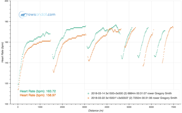 What I found really fascinating was comparing this workout to the same session done on the Concept2 Dynamic. I did this a couple weeks ago.