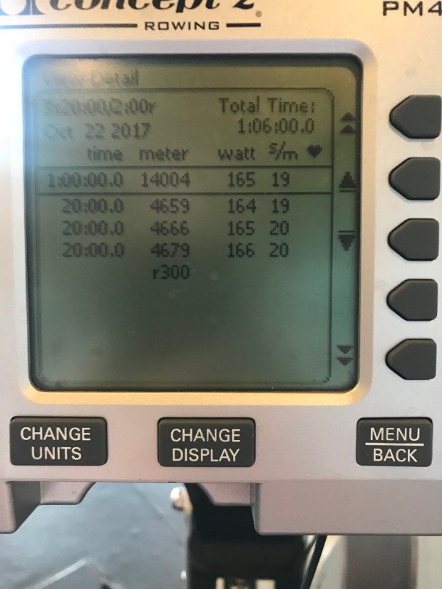 I am trying to keep the power above 300W on the power twenties and to keep the stroke rate between 28 and 30.