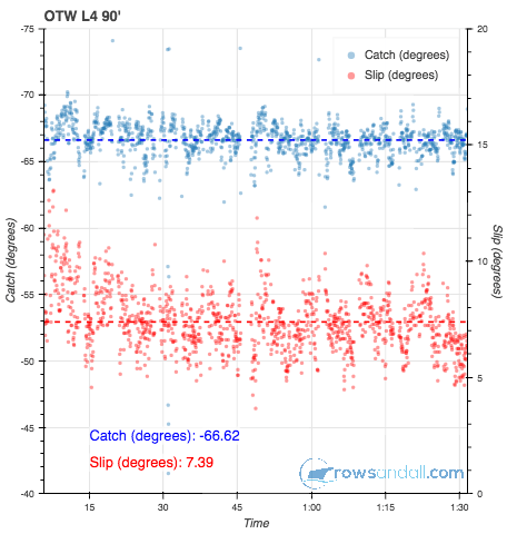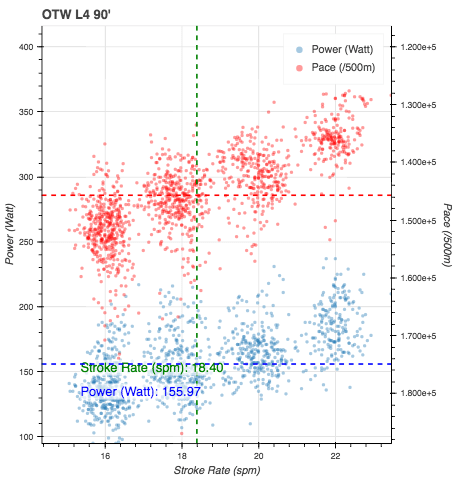 - 500 (1:38.1). Now we’re getting into “fun time”. I consciously tried to rate up and hold the split under 1:40. This was pretty much OK through 300m, but the last 200 were very close to the edge.