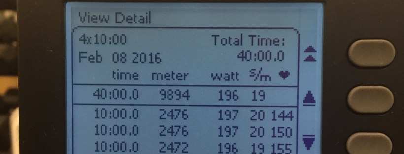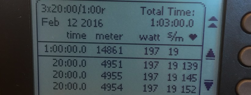 Then over to ergstick for another 2×10′. This time, I did 2 of the 1×21, 3×20, 3×19, 3×18 sequences.
