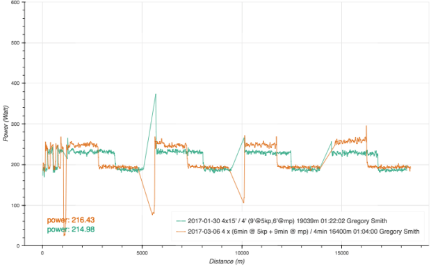 Replay of Monday’s workout. Sticking to the same power targets.