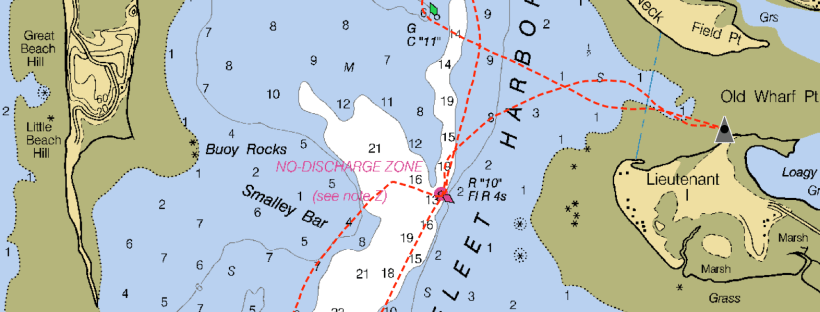 I had intended to row due east straight past the red buoy #10, but the waves wanted me to take a bit of a more northeasterly course. I swung around in a big arc and headed for the beach when I passed the northwest tip of the island.