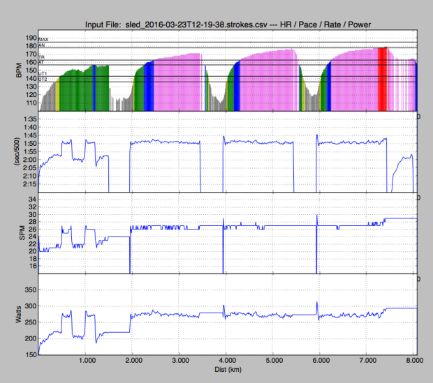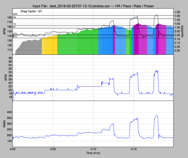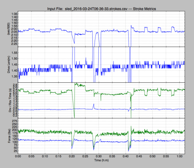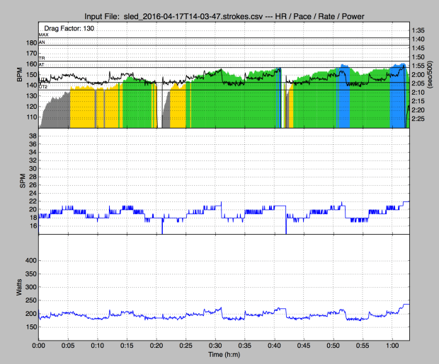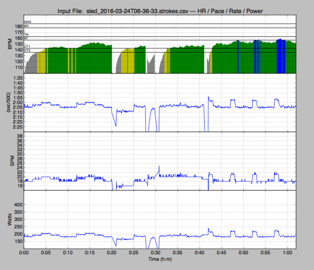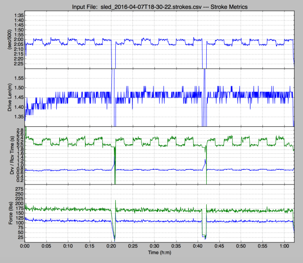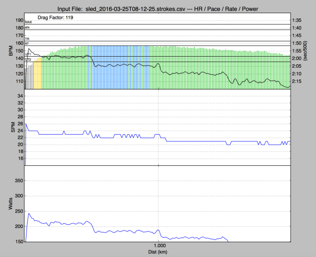 More experimentation with painsled. I was wondering if the problem was being caused by the painsled app trying to find a BLE HR monitor and not succeeding. So I decided to try disabling that. It didn’t make a difference. But on the plus side, my back held up great!