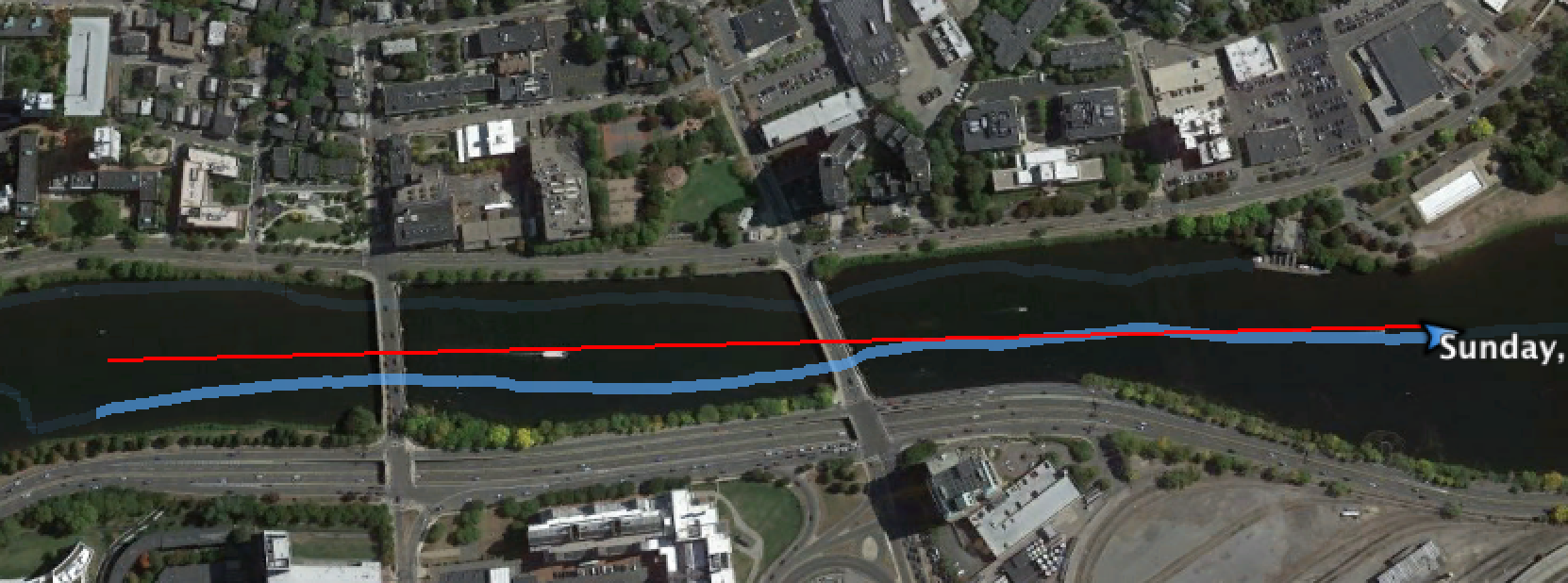 There was a funnel effect under the route 9 bridge and there were a few strokes where it was tough to even swing my oars back to the catch for the next stroke.