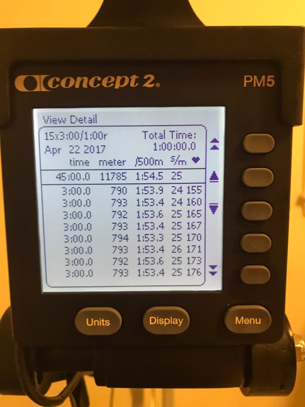 The workout was a bit harder than I would have hoped, but I guess for the first erg session in a week, not so bad.