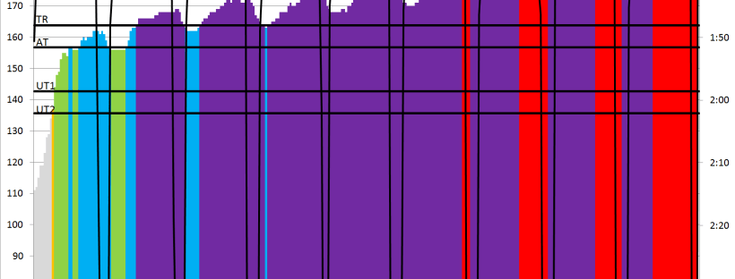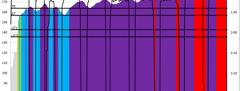 Well, I blew that. I misremembered the duration of the rests, so instead of 3 minutes between the 1′ work intervals, I took 2 minute rests.