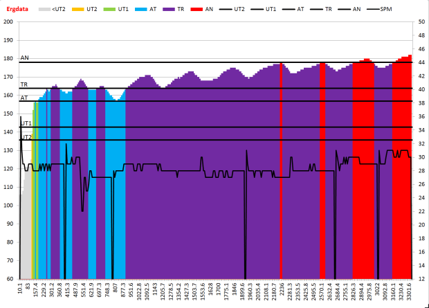 Again the power measurements were crap. There were 237 missed power readings out of about 1200 strokes. Worse, it seems that the missed readings tend to happen when I executed a work interval, so I had no real time feedback in the boat. I’m in contact with NK and they are helping me figure out what’s going wrong. Really strong technical support, I have to say!