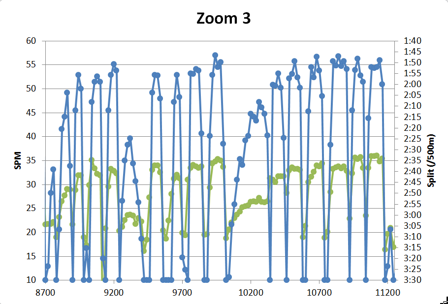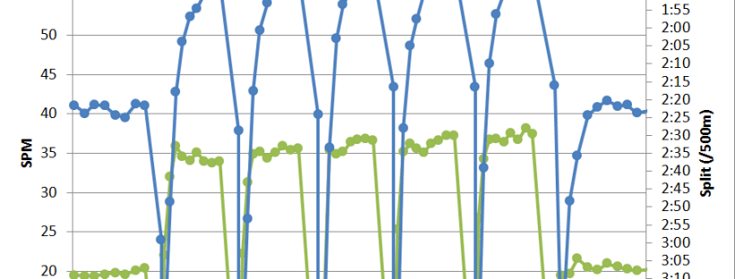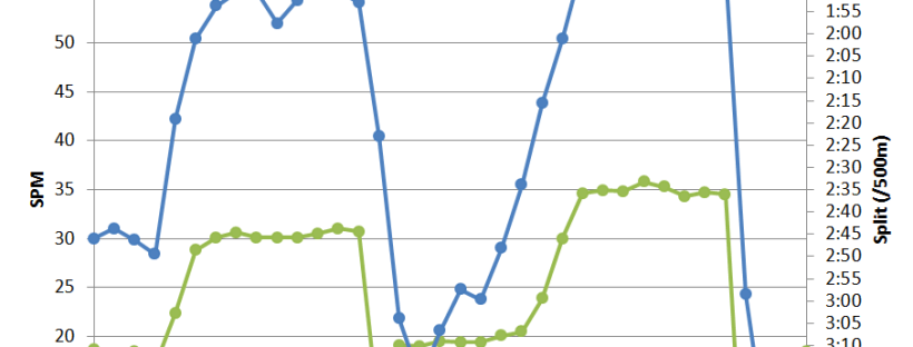 As it turns out, I deviated a bit from the plan. I ended up doing more starts than planned, and a bit less of the steady state rowing. I think I also skimped a bit on the warmup.